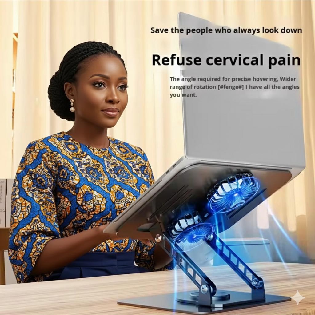 AFRIQUE Laptop Stand with Built-In Cooling Fan, designed for those who demand power, comfort, and performance anywhere.